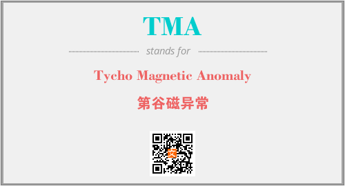 上述内容是“Tycho Magnetic Anomaly”作为“TMA”的缩写,解释为“第谷磁异常”时的信息,以及英文缩略词TMA所代表的英文单词,其对应的中文拼音、详细解释以及在英文中的流行度和相关分类、应用领域及应用示例等。