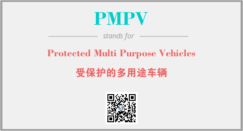 以上为Protected Multi Purpose Vehicles英文缩略词PMPV的中文解释,以及该英文缩写在英语的流行度、分类和应用领域方面的信息。