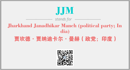 以上为Jharkhand Janadhikar Manch (political party; India)英文缩略词JJM的中文解释,以及该英文缩写在英语的流行度、分类和应用领域方面的信息。