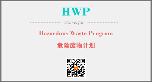 英文缩略词“HWP”经常作为“Hazardous Waste Program”的英文缩写来使用,中文表示:“危险废物计划”。本文将详细介绍英文缩写词HWP所代表英文单词,其对应的中文拼音、详细解释以及在英语中的流行度。此外,还有关于缩略词HWP的分类、应用领域及相关应用示例等。
