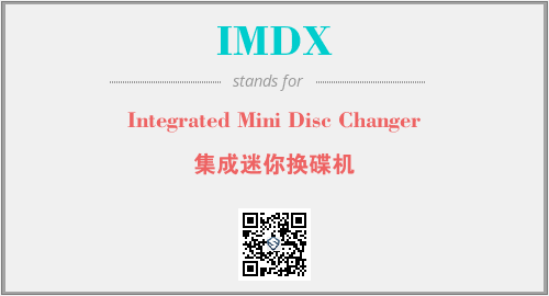 英文缩略词“IMDX”经常作为“Integrated Mini Disc Changer”的英文缩写来使用,中文表示:“集成迷你换碟机”。本文将详细介绍英文缩写词IMDX所代表英文单词,其对应的中文拼音、详细解释以及在英语中的流行度。此外,还有关于缩略词IMDX的分类、应用领域及相关应用示例等。
