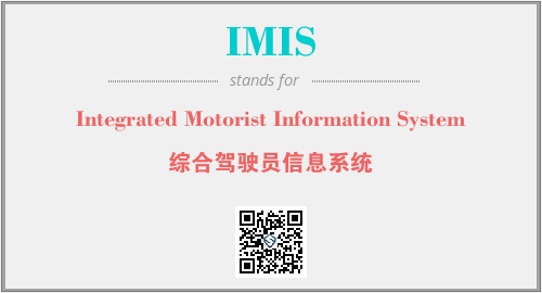 英文缩略词“IMIS”经常作为“Integrated Motorist Information System”的英文缩写来使用,中文表示:“综合驾驶员信息系统”。本文将详细介绍英文缩写词IMIS所代表英文单词,其对应的中文拼音、详细解释以及在英语中的流行度。此外,还有关于缩略词IMIS的分类、应用领域及相关应用示例等。