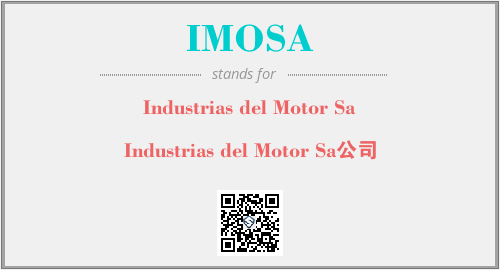以上为Industrias del Motor Sa英文缩略词IMOSA的中文解释,以及该英文缩写在英语的流行度、分类和应用领域方面的信息。