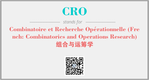 上述内容是“Combinatoire et Recherche Opérationnelle (French: Combinatorics and Operations Research)”作为“CRO”的缩写,解释为“组合与运筹学”时的信息,以及英文缩略词CRO所代表的英文单词,其对应的中文拼音、详细解释以及在英文中的流行度和相关分类、应用领域及应用示例等。