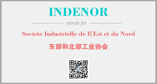 上述内容是“Societe Industrielle de l\'Est et du Nord”作为“INDENOR”的缩写,解释为“东部和北部工业协会”时的信息,以及英文缩略词INDENOR所代表的英文单词,其对应的中文拼音、详细解释以及在英文中的流行度和相关分类、应用领域及应用示例等。