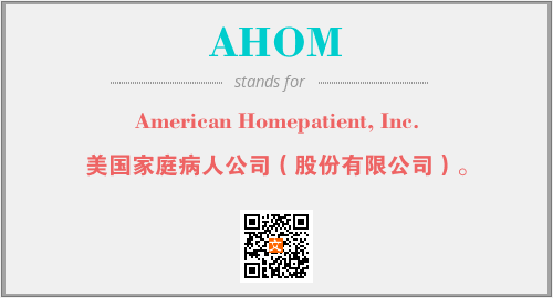 上述内容是“American Homepatient, Inc.”作为“AHOM”的缩写,解释为“美国家庭病人公司(股份有限公司)。”时的信息,以及英文缩略词AHOM所代表的英文单词,其对应的中文拼音、详细解释以及在英文中的流行度和相关分类、应用领域及应用示例等。