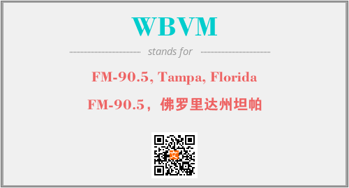 上述内容是“FM-90.5, Tampa, Florida”作为“WBVM”的缩写,解释为“FM-90.5,佛罗里达州坦帕”时的信息,以及英文缩略词WBVM所代表的英文单词,其对应的中文拼音、详细解释以及在英文中的流行度和相关分类、应用领域及应用示例等。