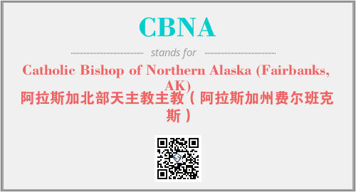 英文缩略词“CBNA”经常作为“Catholic Bishop of Northern Alaska (Fairbanks, AK)”的英文缩写来使用,中文表示:“阿拉斯加北部天主教主教(阿拉斯加州费尔班克斯)”。本文将详细介绍英文缩写词CBNA所代表英文单词,其对应的中文拼音、详细解释以及在英语中的流行度。此外,还有关于缩略词CBNA的分类、应用领域及相关应用示例等。