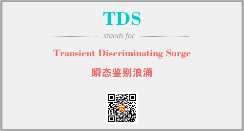 上述内容是“Transient Discriminating Surge”作为“TDS”的缩写,解释为“瞬态鉴别浪涌”时的信息,以及英文缩略词TDS所代表的英文单词,其对应的中文拼音、详细解释以及在英文中的流行度和相关分类、应用领域及应用示例等。