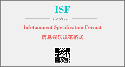 英文缩略词“ISF”经常作为“Infotainment Specification Format”的英文缩写来使用,中文表示:“信息娱乐规范格式”。本文将详细介绍英文缩写词ISF所代表英文单词,其对应的中文拼音、详细解释以及在英语中的流行度。此外,还有关于缩略词ISF的分类、应用领域及相关应用示例等。