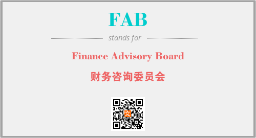 上述内容是“Finance Advisory Board”作为“FAB”的缩写,解释为“财务咨询委员会”时的信息,以及英文缩略词FAB所代表的英文单词,其对应的中文拼音、详细解释以及在英文中的流行度和相关分类、应用领域及应用示例等。