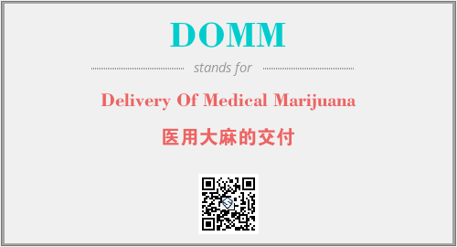 英文缩略词“DOMM”经常作为“Delivery Of Medical Marijuana”的英文缩写来使用,中文表示:“医用大麻的交付”。本文将详细介绍英文缩写词DOMM所代表英文单词,其对应的中文拼音、详细解释以及在英语中的流行度。此外,还有关于缩略词DOMM的分类、应用领域及相关应用示例等。