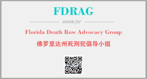 上述内容是“Florida Death Row Advocacy Group”作为“FDRAG”的缩写,解释为“佛罗里达州死刑犯倡导小组”时的信息,以及英文缩略词FDRAG所代表的英文单词,其对应的中文拼音、详细解释以及在英文中的流行度和相关分类、应用领域及应用示例等。