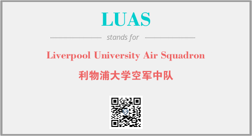 上述内容是“Liverpool University Air Squadron”作为“LUAS”的缩写,解释为“利物浦大学空军中队”时的信息,以及英文缩略词LUAS所代表的英文单词,其对应的中文拼音、详细解释以及在英文中的流行度和相关分类、应用领域及应用示例等。
