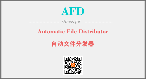 英文缩略词“AFD”经常作为“Automatic File Distributor”的英文缩写来使用,中文表示:“自动文件分发器”。本文将详细介绍英文缩写词AFD所代表英文单词,其对应的中文拼音、详细解释以及在英语中的流行度。此外,还有关于缩略词AFD的分类、应用领域及相关应用示例等。