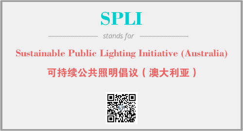 上述内容是“Sustainable Public Lighting Initiative (Australia)”作为“SPLI”的缩写,解释为“可持续公共照明倡议(澳大利亚)”时的信息,以及英文缩略词SPLI所代表的英文单词,其对应的中文拼音、详细解释以及在英文中的流行度和相关分类、应用领域及应用示例等。