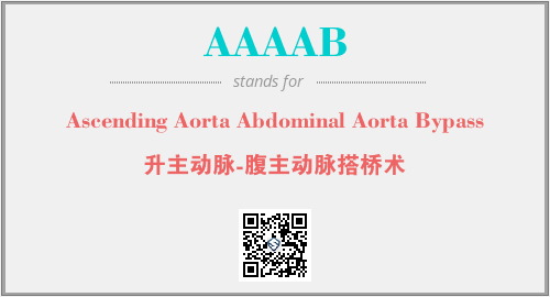 英文缩略词“AAAAB”经常作为“Ascending Aorta Abdominal Aorta Bypass”的英文缩写来使用,中文表示:“升主动脉-腹主动脉搭桥术”。本文将详细介绍英文缩写词AAAAB所代表英文单词,其对应的中文拼音、详细解释以及在英语中的流行度。此外,还有关于缩略词AAAAB的分类、应用领域及相关应用示例等。