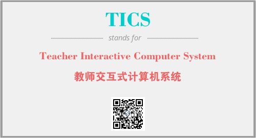 英文缩略词“TICS”经常作为“Teacher Interactive Computer System”的英文缩写来使用,中文表示:“教师交互式计算机系统”。本文将详细介绍英文缩写词TICS所代表英文单词,其对应的中文拼音、详细解释以及在英语中的流行度。此外,还有关于缩略词TICS的分类、应用领域及相关应用示例等。