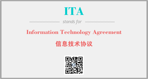 英文缩略词“ITA”经常作为“Information Technology Agreement”的英文缩写来使用,中文表示:“信息技术协议”。本文将详细介绍英文缩写词ITA所代表英文单词,其对应的中文拼音、详细解释以及在英语中的流行度。此外,还有关于缩略词ITA的分类、应用领域及相关应用示例等。