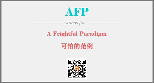 上述内容是“A Frightful Paradigm”作为“AFP”的缩写,解释为“可怕的范例”时的信息,以及英文缩略词AFP所代表的英文单词,其对应的中文拼音、详细解释以及在英文中的流行度和相关分类、应用领域及应用示例等。