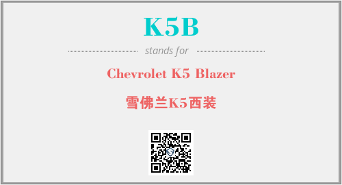 上述内容是“Chevrolet K5 Blazer”作为“K5B”的缩写,解释为“雪佛兰K5西装”时的信息,以及英文缩略词K5B所代表的英文单词,其对应的中文拼音、详细解释以及在英文中的流行度和相关分类、应用领域及应用示例等。