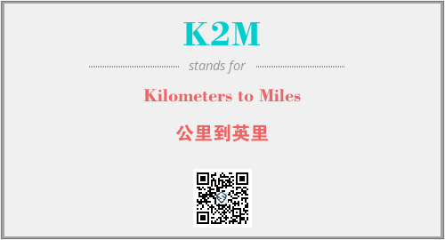 以上为Kilometers to Miles英文缩略词K2M的中文解释,以及该英文缩写在英语的流行度、分类和应用领域方面的信息。