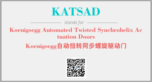 上述内容是“Koenigsegg Automated Twisted Synchrohelix Actuation Doors”作为“KATSAD”的缩写,解释为“Koenigsegg自动扭转同步螺旋驱动门”时的信息,以及英文缩略词KATSAD所代表的英文单词,其对应的中文拼音、详细解释以及在英文中的流行度和相关分类、应用领域及应用示例等。