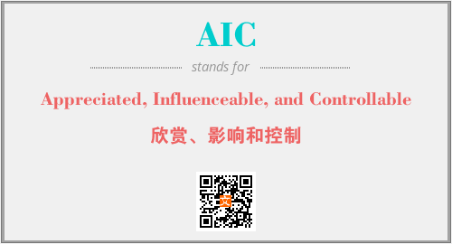 英文缩略词“AIC”经常作为“Appreciated, Influenceable, and Controllable”的英文缩写来使用,中文表示:“欣赏、影响和控制”。本文将详细介绍英文缩写词AIC所代表英文单词,其对应的中文拼音、详细解释以及在英语中的流行度。此外,还有关于缩略词AIC的分类、应用领域及相关应用示例等。