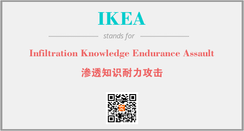 上述内容是“Infiltration Knowledge Endurance Assault”作为“IKEA”的缩写,解释为“渗透知识耐力攻击”时的信息,以及英文缩略词IKEA所代表的英文单词,其对应的中文拼音、详细解释以及在英文中的流行度和相关分类、应用领域及应用示例等。