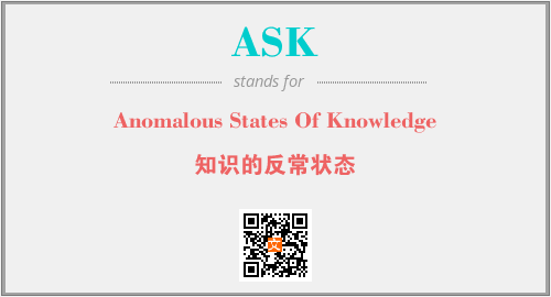 上述内容是“Anomalous States Of Knowledge”作为“ASK”的缩写,解释为“知识的反常状态”时的信息,以及英文缩略词ASK所代表的英文单词,其对应的中文拼音、详细解释以及在英文中的流行度和相关分类、应用领域及应用示例等。