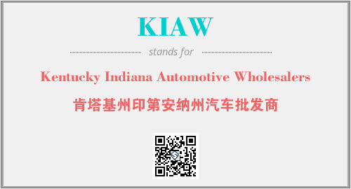 上述内容是“Kentucky Indiana Automotive Wholesalers”作为“KIAW”的缩写,解释为“肯塔基州印第安纳州汽车批发商”时的信息,以及英文缩略词KIAW所代表的英文单词,其对应的中文拼音、详细解释以及在英文中的流行度和相关分类、应用领域及应用示例等。