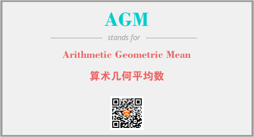上述内容是“Arithmetic Geometric Mean”作为“AGM”的缩写,解释为“算术几何平均数”时的信息,以及英文缩略词AGM所代表的英文单词,其对应的中文拼音、详细解释以及在英文中的流行度和相关分类、应用领域及应用示例等。