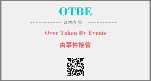 上述内容是“Over Taken By Events”作为“OTBE”的缩写,解释为“由事件接管”时的信息,以及英文缩略词OTBE所代表的英文单词,其对应的中文拼音、详细解释以及在英文中的流行度和相关分类、应用领域及应用示例等。