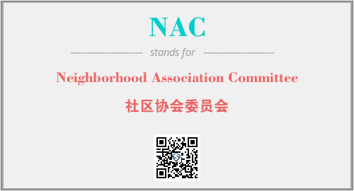 上述内容是“Neighborhood Association Committee”作为“NAC”的缩写,解释为“社区协会委员会”时的信息,以及英文缩略词NAC所代表的英文单词,其对应的中文拼音、详细解释以及在英文中的流行度和相关分类、应用领域及应用示例等。