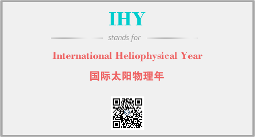 英文缩略词“IHY”经常作为“International Heliophysical Year”的英文缩写来使用,中文表示:“国际太阳物理年”。本文将详细介绍英文缩写词IHY所代表英文单词,其对应的中文拼音、详细解释以及在英语中的流行度。此外,还有关于缩略词IHY的分类、应用领域及相关应用示例等。
