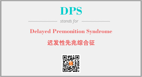 上述内容是“Delayed Premonition Syndrome”作为“DPS”的缩写,解释为“迟发性先兆综合征”时的信息,以及英文缩略词DPS所代表的英文单词,其对应的中文拼音、详细解释以及在英文中的流行度和相关分类、应用领域及应用示例等。