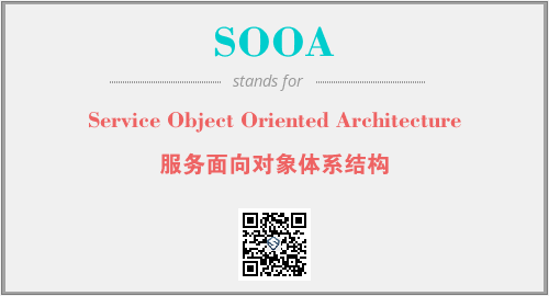 英文缩略词“SOOA”经常作为“Service Object Oriented Architecture”的英文缩写来使用,中文表示:“服务面向对象体系结构”。本文将详细介绍英文缩写词SOOA所代表英文单词,其对应的中文拼音、详细解释以及在英语中的流行度。此外,还有关于缩略词SOOA的分类、应用领域及相关应用示例等。