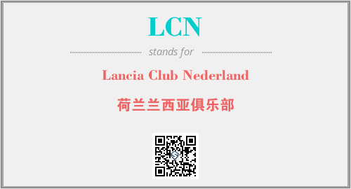 上述内容是“Lancia Club Nederland”作为“LCN”的缩写,解释为“荷兰兰西亚俱乐部”时的信息,以及英文缩略词LCN所代表的英文单词,其对应的中文拼音、详细解释以及在英文中的流行度和相关分类、应用领域及应用示例等。