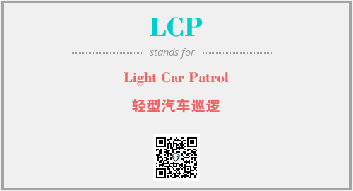上述内容是“Light Car Patrol”作为“LCP”的缩写,解释为“轻型汽车巡逻”时的信息,以及英文缩略词LCP所代表的英文单词,其对应的中文拼音、详细解释以及在英文中的流行度和相关分类、应用领域及应用示例等。