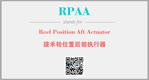 上述内容是“Reel Position Aft Actuator”作为“RPAA”的缩写,解释为“拨禾轮位置后部执行器”时的信息,以及英文缩略词RPAA所代表的英文单词,其对应的中文拼音、详细解释以及在英文中的流行度和相关分类、应用领域及应用示例等。