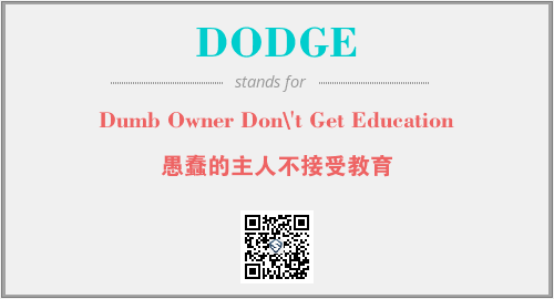 以上为Dumb Owner Don\'t Get Education英文缩略词DODGE的中文解释,以及该英文缩写在英语的流行度、分类和应用领域方面的信息。