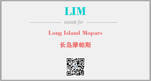 英文缩略词“LIM”经常作为“Long Island Mopars”的英文缩写来使用,中文表示:“长岛摩帕斯”。本文将详细介绍英文缩写词LIM所代表英文单词,其对应的中文拼音、详细解释以及在英语中的流行度。此外,还有关于缩略词LIM的分类、应用领域及相关应用示例等。