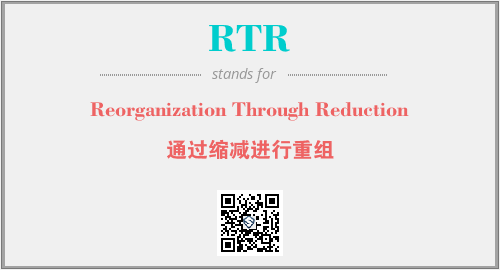 上述内容是“Reorganization Through Reduction”作为“RTR”的缩写,解释为“通过缩减进行重组”时的信息,以及英文缩略词RTR所代表的英文单词,其对应的中文拼音、详细解释以及在英文中的流行度和相关分类、应用领域及应用示例等。