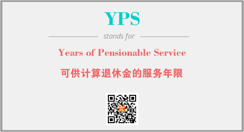 上述内容是“Years of Pensionable Service”作为“YPS”的缩写,解释为“可供计算退休金的服务年限”时的信息,以及英文缩略词YPS所代表的英文单词,其对应的中文拼音、详细解释以及在英文中的流行度和相关分类、应用领域及应用示例等。