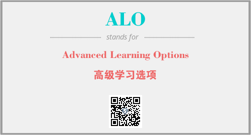 上述内容是“Advanced Learning Options”作为“ALO”的缩写,解释为“高级学习选项”时的信息,以及英文缩略词ALO所代表的英文单词,其对应的中文拼音、详细解释以及在英文中的流行度和相关分类、应用领域及应用示例等。