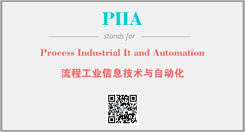 英文缩略词“PIIA”经常作为“Process Industrial It and Automation”的英文缩写来使用,中文表示:“流程工业信息技术与自动化”。本文将详细介绍英文缩写词PIIA所代表英文单词,其对应的中文拼音、详细解释以及在英语中的流行度。此外,还有关于缩略词PIIA的分类、应用领域及相关应用示例等。