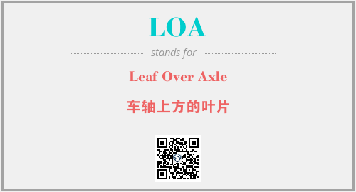 上述内容是“Leaf Over Axle”作为“LOA”的缩写,解释为“车轴上方的叶片”时的信息,以及英文缩略词LOA所代表的英文单词,其对应的中文拼音、详细解释以及在英文中的流行度和相关分类、应用领域及应用示例等。