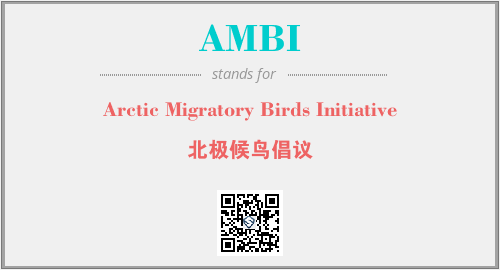 上述内容是“Arctic Migratory Birds Initiative”作为“AMBI”的缩写,解释为“北极候鸟倡议”时的信息,以及英文缩略词AMBI所代表的英文单词,其对应的中文拼音、详细解释以及在英文中的流行度和相关分类、应用领域及应用示例等。