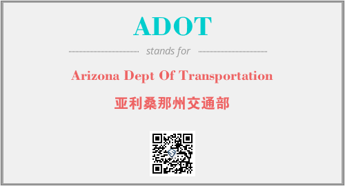 英文缩略词“ADOT”经常作为“Arizona Dept Of Transportation”的英文缩写来使用,中文表示:“亚利桑那州交通部”。本文将详细介绍英文缩写词ADOT所代表英文单词,其对应的中文拼音、详细解释以及在英语中的流行度。此外,还有关于缩略词ADOT的分类、应用领域及相关应用示例等。