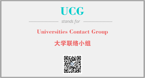英文缩略词“UCG”经常作为“Universities Contact Group”的英文缩写来使用,中文表示:“大学联络小组”。本文将详细介绍英文缩写词UCG所代表英文单词,其对应的中文拼音、详细解释以及在英语中的流行度。此外,还有关于缩略词UCG的分类、应用领域及相关应用示例等。